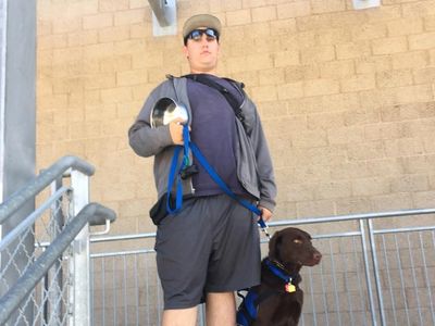 Heather Champion, a local from Mesquite, NV, thought she couldn't afford a service dog until the community raised all the funds for the program and more. She has now been happily matched with her seizure service dog Jake for seven years and counting.